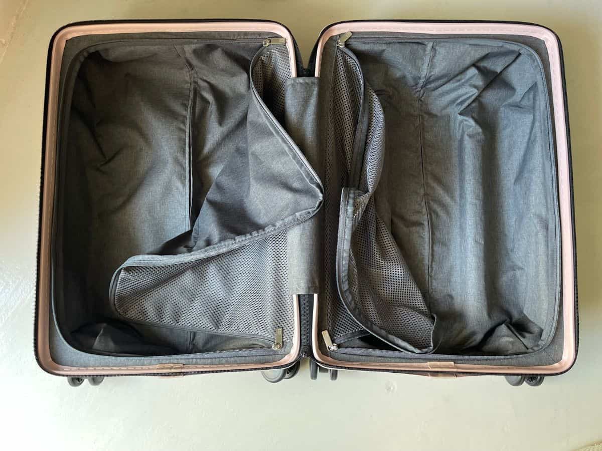 Inside the hard-shell suitcase main compartment, there are two internal pockets that allow you to keep your items organized during travel.
